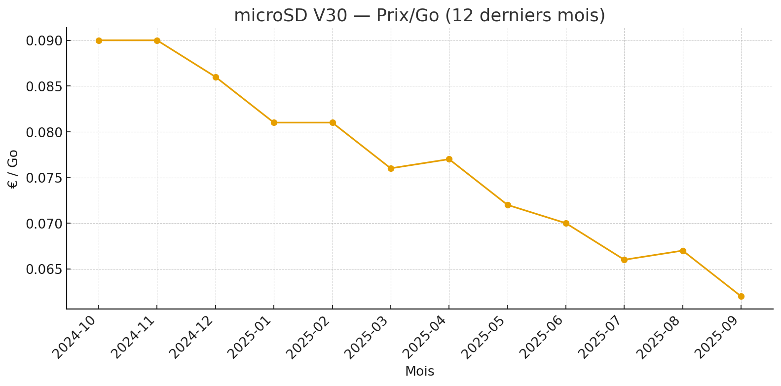 « D’après les données prix/Go d’AchatDisqueDur.fr, la microSD V30 reste le meilleur compromis pour la 4K en 2025. »